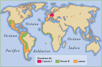 Tras el descubrimiento de América en 1492, España empezó a convertirse en un gran imperio gracias a sus numerosas conquistas. En Europa, España ya poseía una gran cantidad de territorios: Países Bajos, parte de Italia, centro de Europa. Y fuera de esta, tenía en propiedad a las colonias americanas, numerosos territorios en África y Asia y, además, consiguió Portugal en 1580. Este gran imperio se formó durante los reinados de Carlos I y Felipe II, ambos en el siglo XVI.